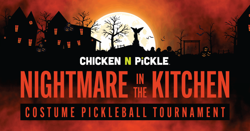 Join us for Nightmare in the Kitchen, a Halloween-themed social pickleball tournament filled with fun, friendly competition, and festive spirit. All teams are required to come in costume and play under a spooky, Halloween-inspired team name. Prizes will be awarded for 1st, 2nd, and 3rd place, plus a $25 Chicken N Pickle gift card for the best dressed team. Get ready for a night of creativity, laughter, and spirited play on the courts.