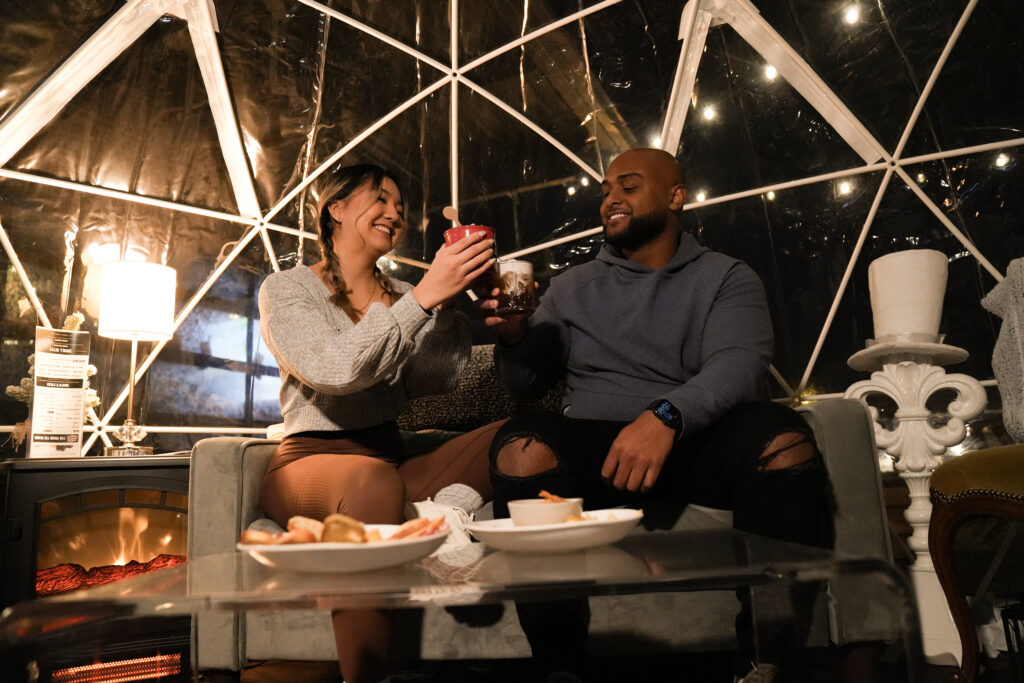 With crisp air settling in and twinkle lights above, your reservation in an igloo offers the ideal spot to raise a glass and toast the year gone by, reminisce about the past with heartfelt conversations, and remember that the greatest gift this season is gathering together! You’ll also enjoy two complimentary s’mores per guest, complete with everything you need to roast and savor those sweet treats!